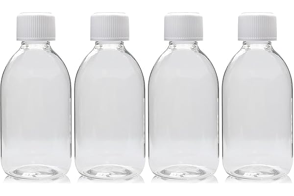 White Spiral Cap Empty Plastic Bottles 4 Bottles x 250 ml Clear Recyclable-79.2